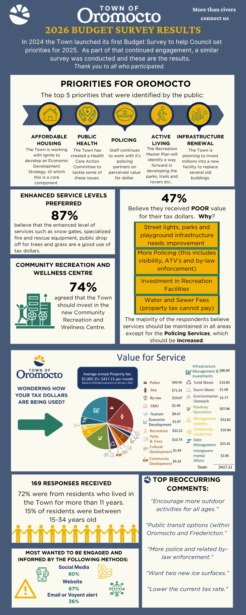 At Council in Committee on Tuesday, 14 October 2025, the Chief Administrative Officer presented the attached presentation to the Council and the public. Please feel free to review the presentation and forward any comments via email to the Town at gengov@oromocto.ca. Please click here to view 2026 Budget Public Consultation.
